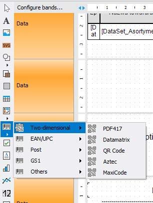 Aby dodać pole z kodem QR, przejdź do panelu po lewej stronie i wybierz kolejno: Barcode > Two-dimensional > QR Code.